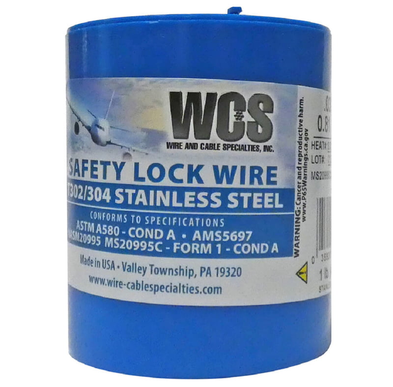 Stainless steel safety wire furnished in convenient 1 lb. dispensing container. Available in Type 302/304 stainless steel (soft temper) per MS20995.